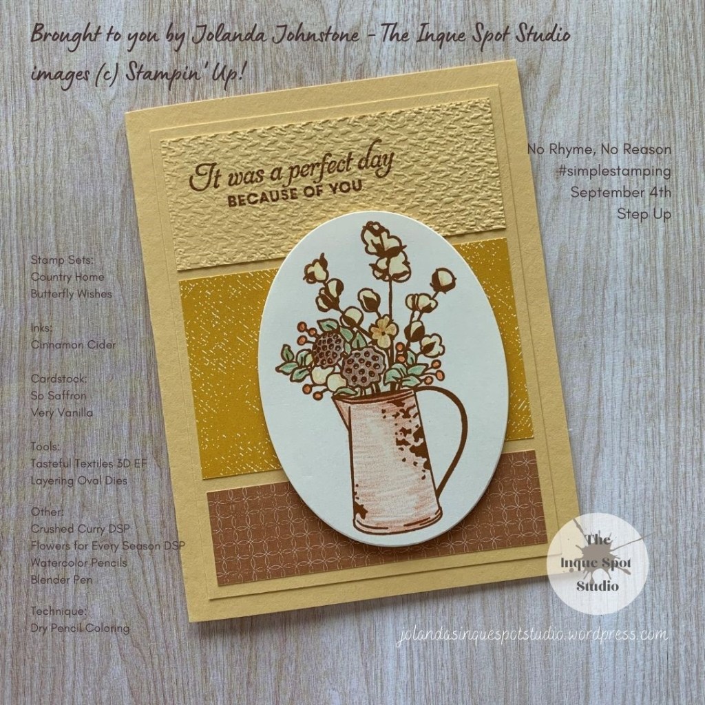 This week the theme for Simple Stamping is No Rhyme * No Reason. When planning what I will do so I can update my website, I take a look at various sources for inspiration. On the National Register of Official Days for September, September 1st is listed as No Rhyme * No Reason Day. That works for me! Make something that make you happy…