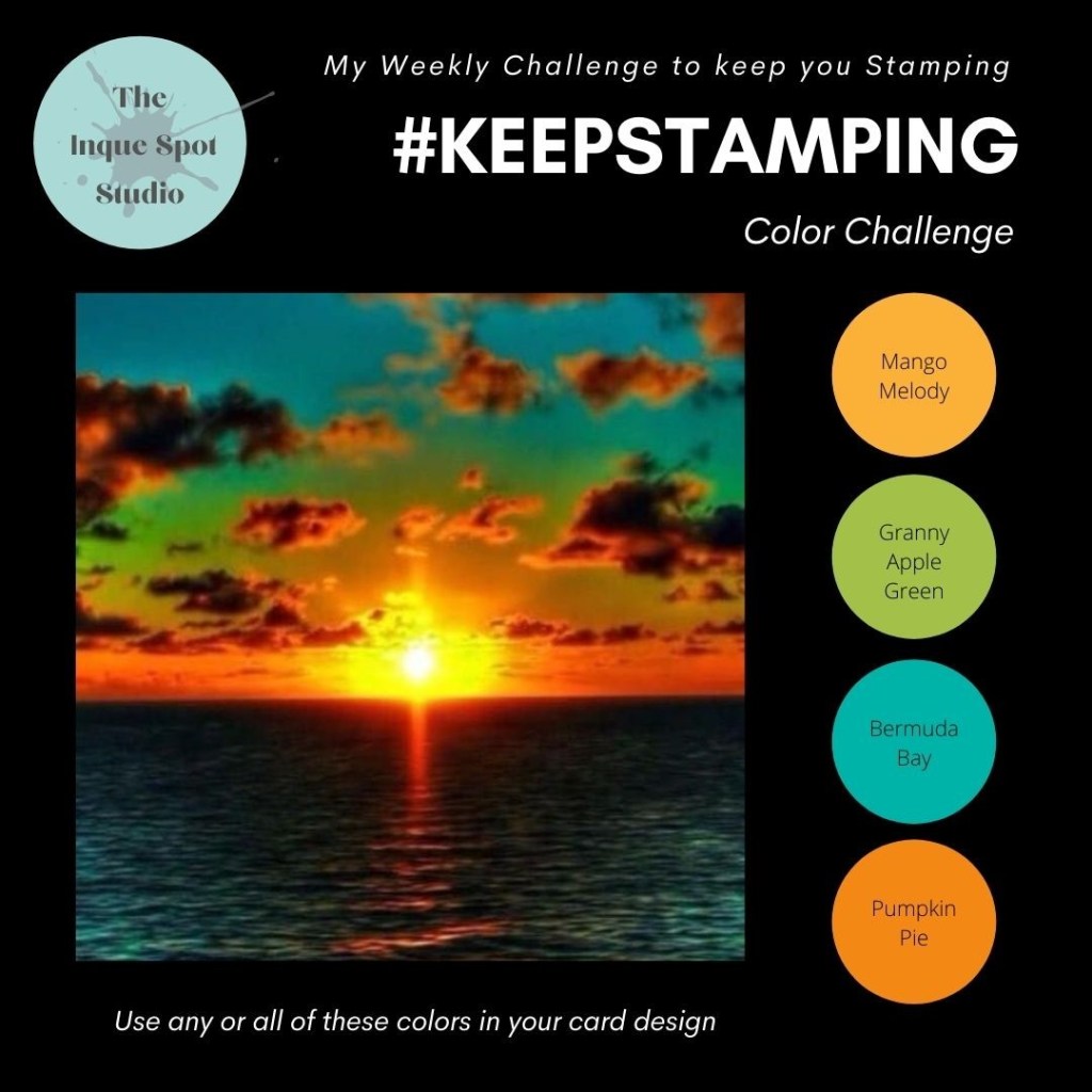 This week my challenge is to use a color combo that was inspired by this spectacular sunset. Wouldn’t it be great to be on the shore of this body of water and see such glorious colors?
