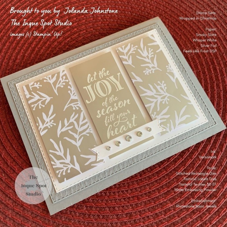 #stampinup, #jolandajohnstone, #theinquespotstudio, #rubberstamps, #handmadecards, #makeacardsenacard, #gdp258, #wrappedinchristmas, #feelslikefrost, #christmascards, #holidaycards