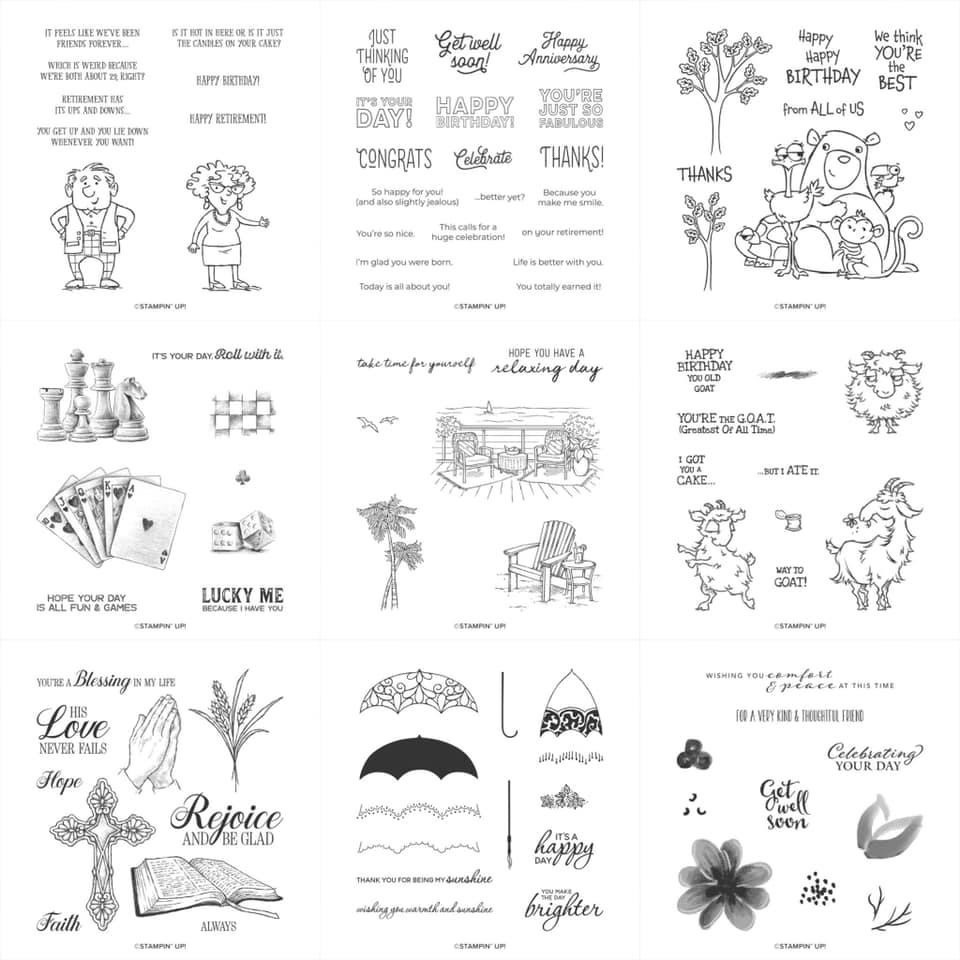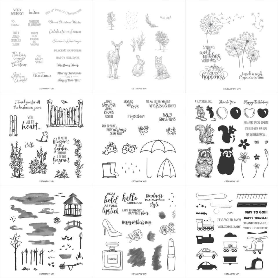 These are the cling and photopolymer stamp sets from the 2020–2021 Annual Catalog that you can purchase a 15% discount.