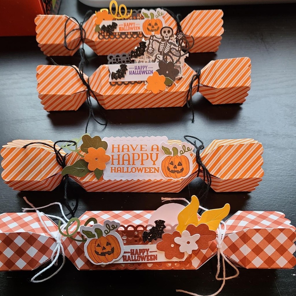 These are the favors that can be made with this Paper Pumpkin Kit. Note that some elements (Skeletons, Bats, Sentiment) shown are from previous Halloween Paper Pumpkin kits