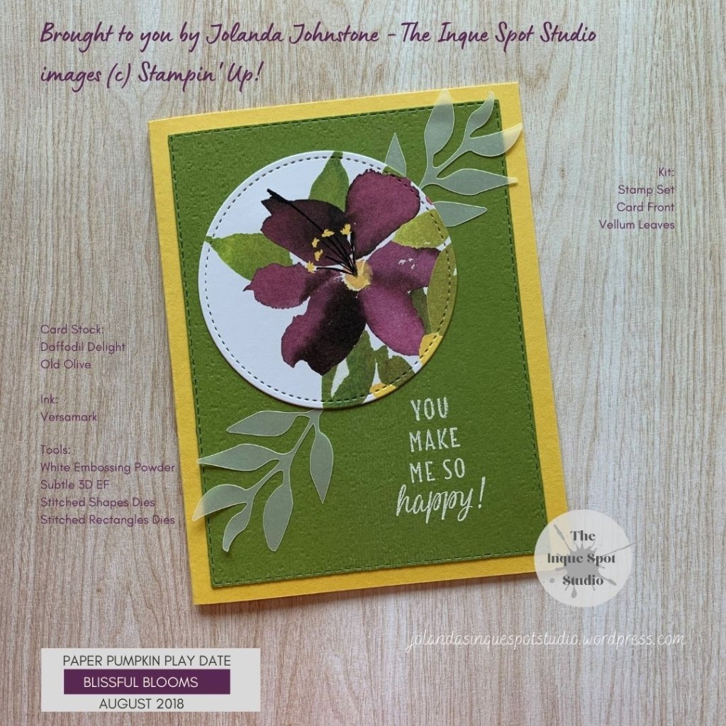 #paperpumpkin, #blissfulblossoms, # paperpumpkinaugust2018, #stampinup, #jolandajohnstone, #theinquespotstudio, #rubberstamping, #handmadecards, #makeacardsendacard, #heresacard