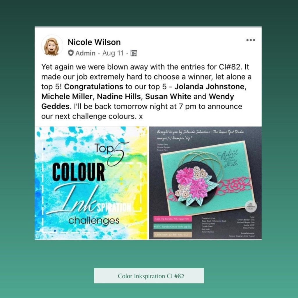 One of the challenges that I especially like to participate in is Colour Inkspiration. I started with #82 and have entered my creations in all of the challenges since then.