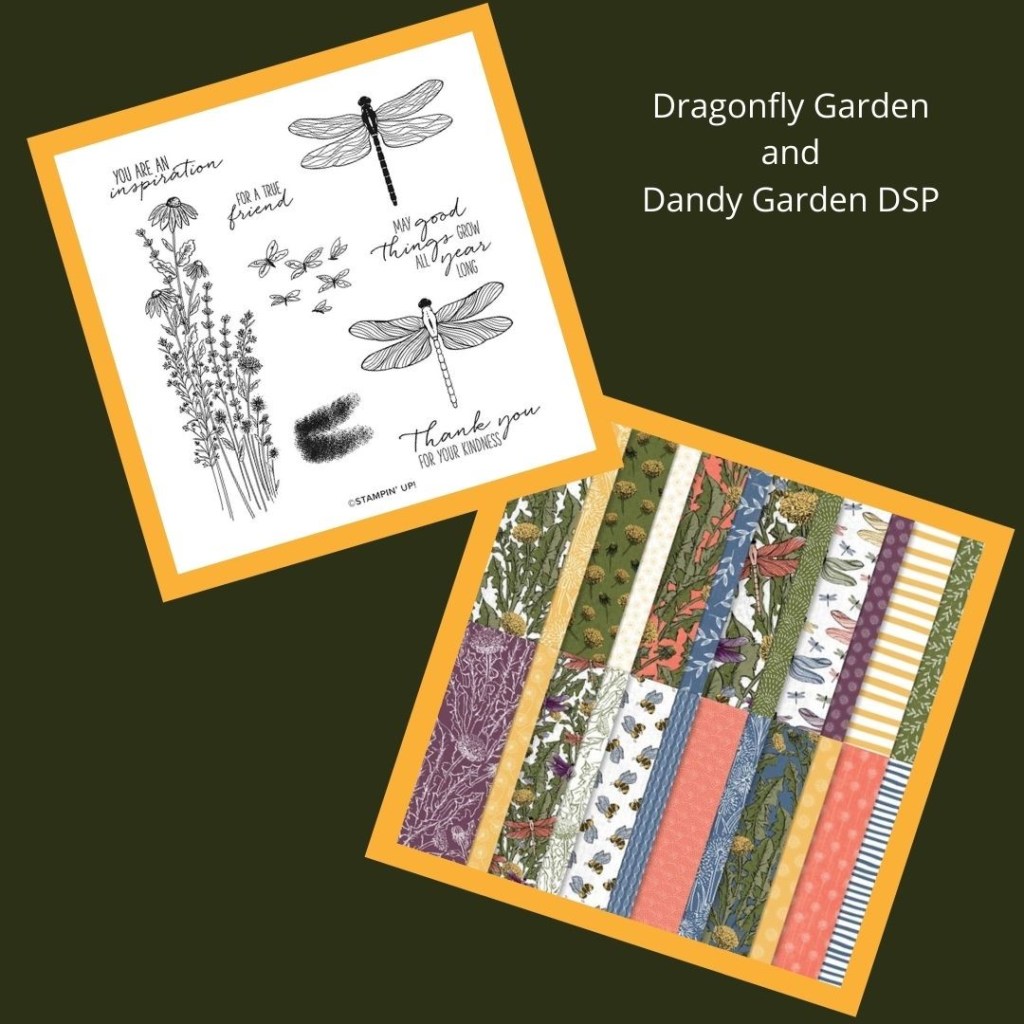 What fun to use the Dragonfly Garden stamp set and Dandy Garden Designer Series Paper with this week’s sketch.