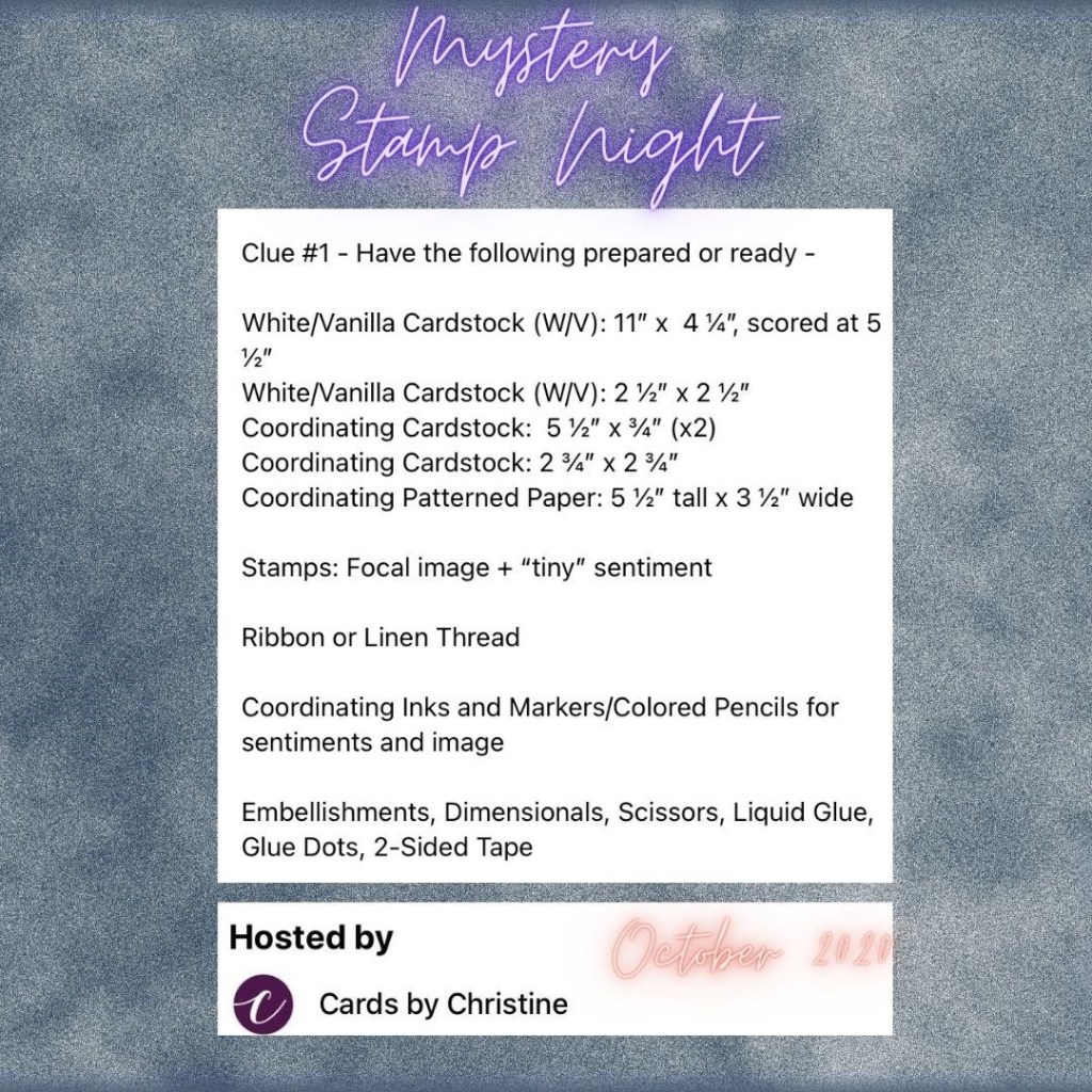 I don’t think I have told you about the various cards I have made related to Christine Bertram’s Mystery Stamp Night for the months of September, October and last night, November.