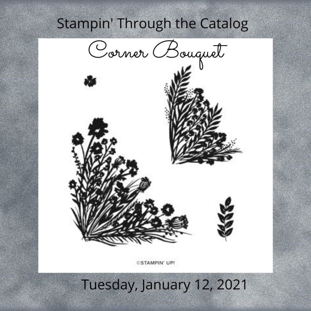 Today I created a card for the Tuesday Stamping Through the Catalog Challenge with the Sale-a-bration stamp set: Corner Bouquet.
