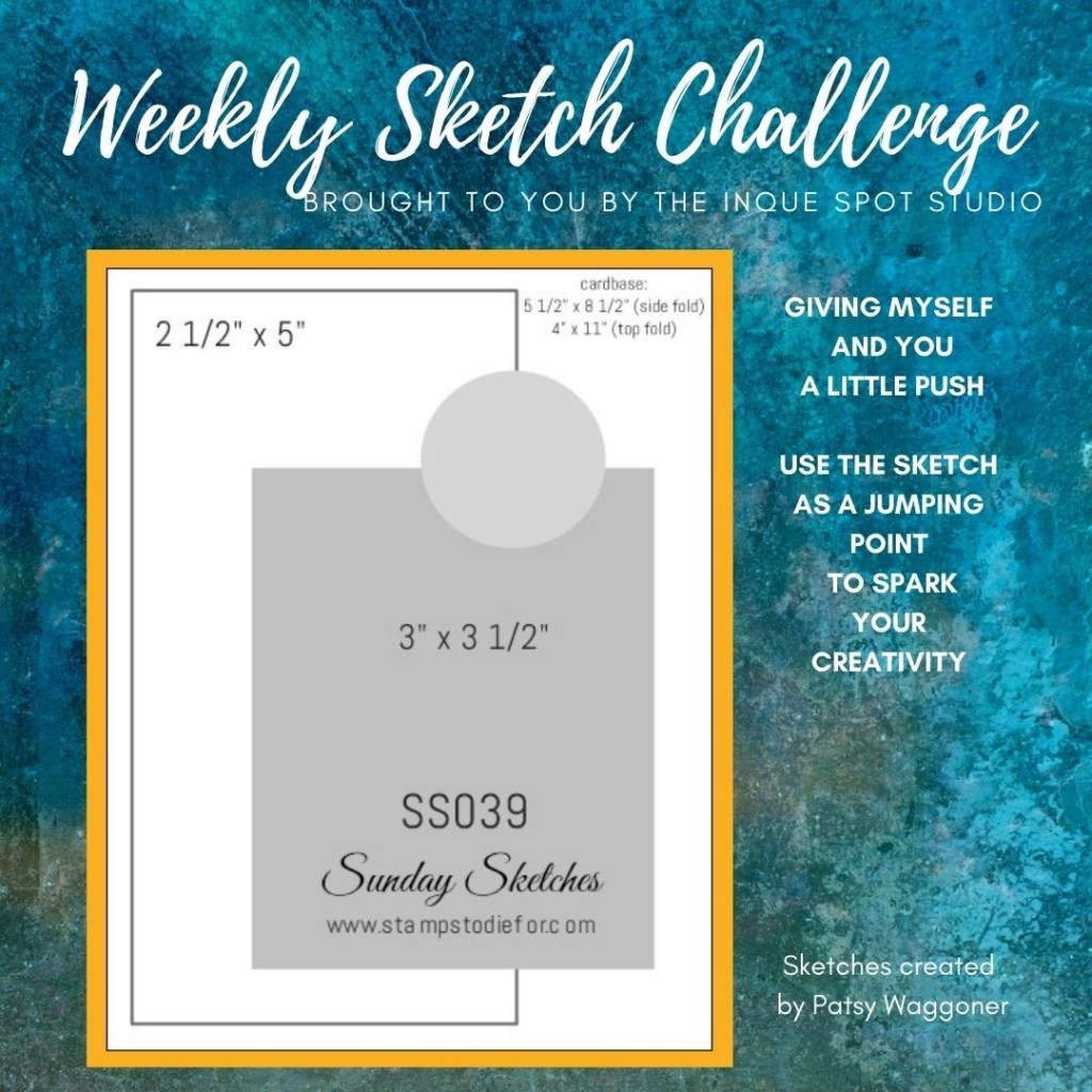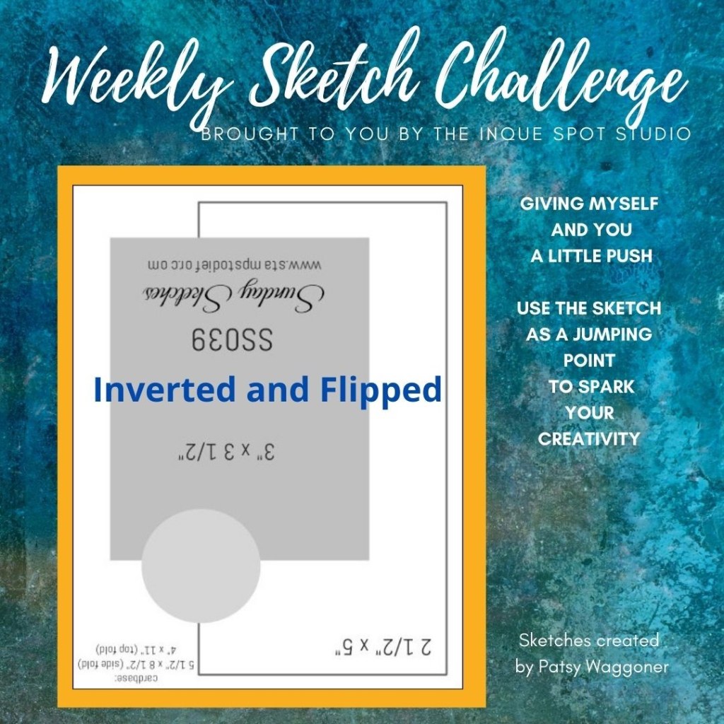 I did an inverted flip of the sketch and put the circle sentiment, Hello, from Quite Curvy in the lower left. This arrangement was more pleasing given the final stamped panel I chose to use.