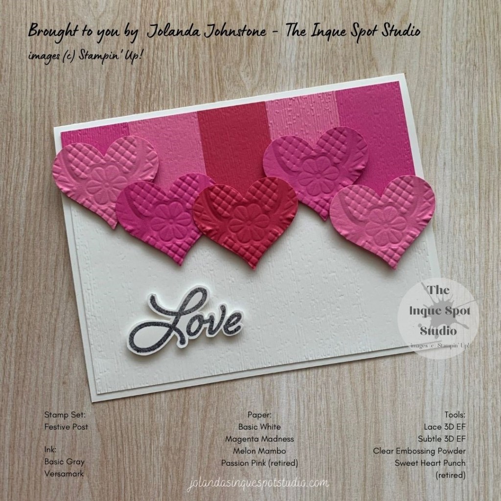Gorgeous, Jolanda! I love how you alternated the colors on the cascading hearts. The embossed detail is a great touch. Thank you so much for joining us this week over at The Paper Players!