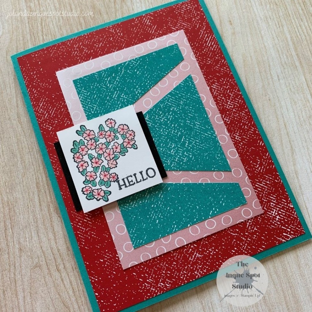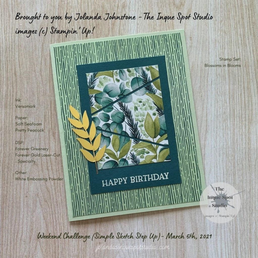 A fun sketch with a twist by cutting the top panel in to three pieces. I may keep this one aside to do a Stepped Up version with more texture with embossing and die-cutting…