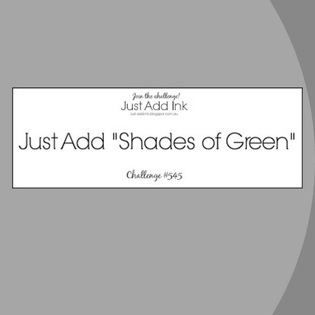 Will be taking a few days of R&R, but wanted to create a card for the Just Add Ink Team Color Challenge – JAI545. For a girl whose favorite color is green, the Shades of Green theme was just too much to resist…