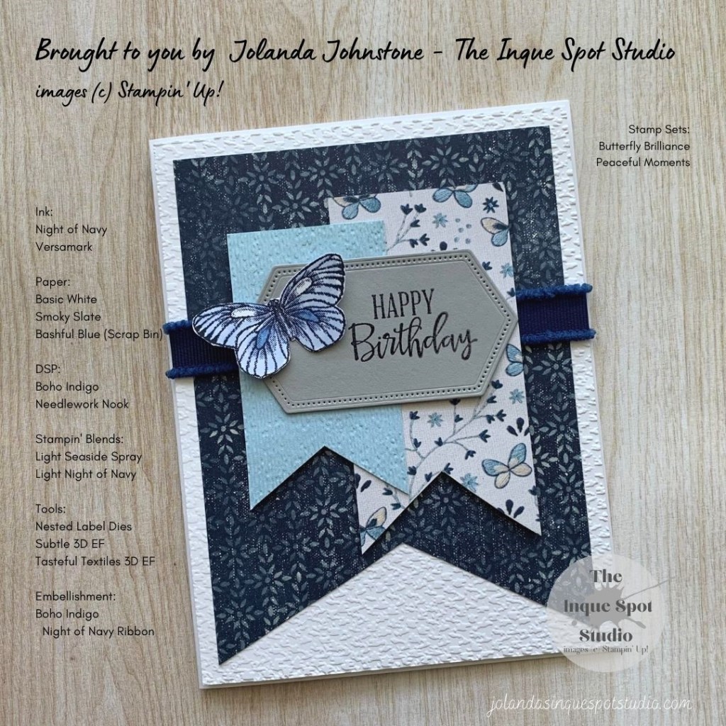 - Ribbon: (½”) Night of Navy from the Boho Indigo Product Medley kit.