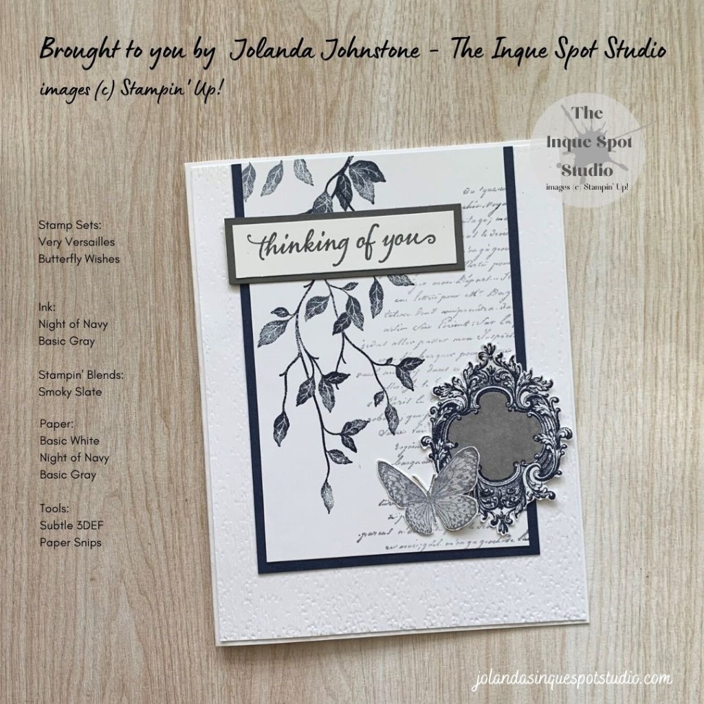 Visiting with an old friend that hasn’t seen a lot of love lately. When a new catalog comes out, we tend to create with all things new and several of the staples in our stash get a little neglected. For these two challenges, I pulled out the Very Versailles stamp set and complimented it with an image from the retired stamp set Butterfly Wishes.
