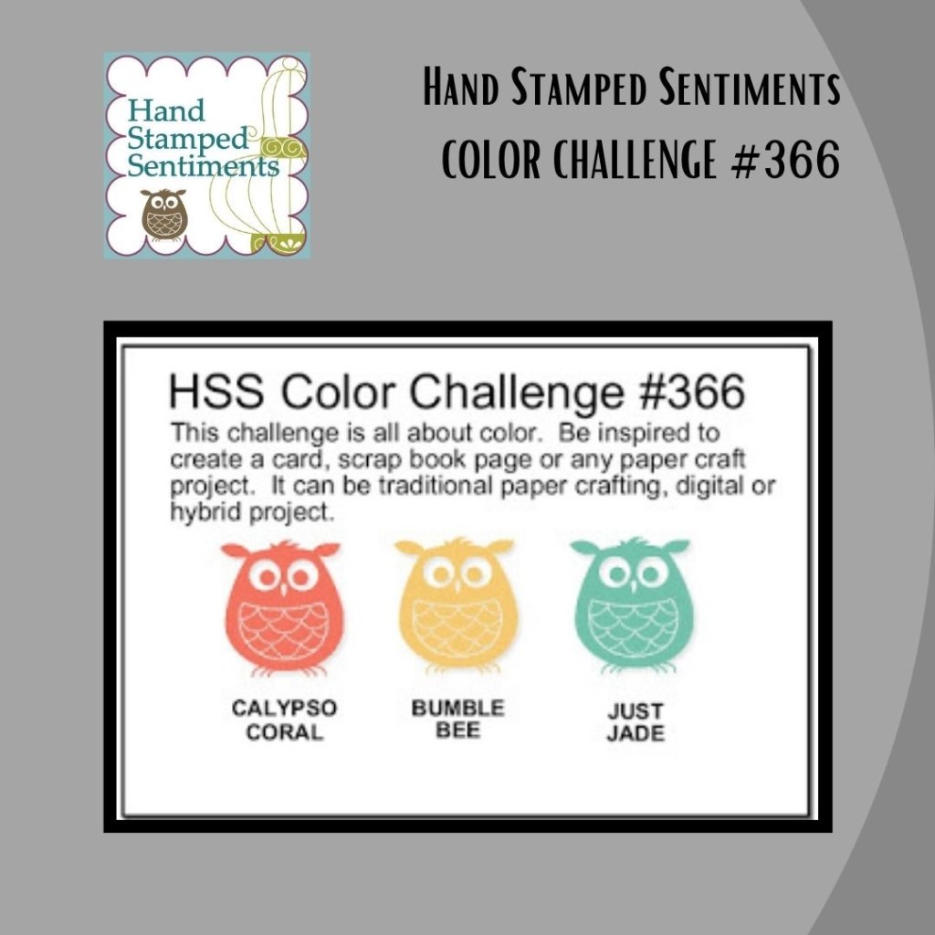 The choice of stamp set – Celebrate Sunflowers was influenced by the Color Challenge presented by Hand Stamped Sentiments (#366).