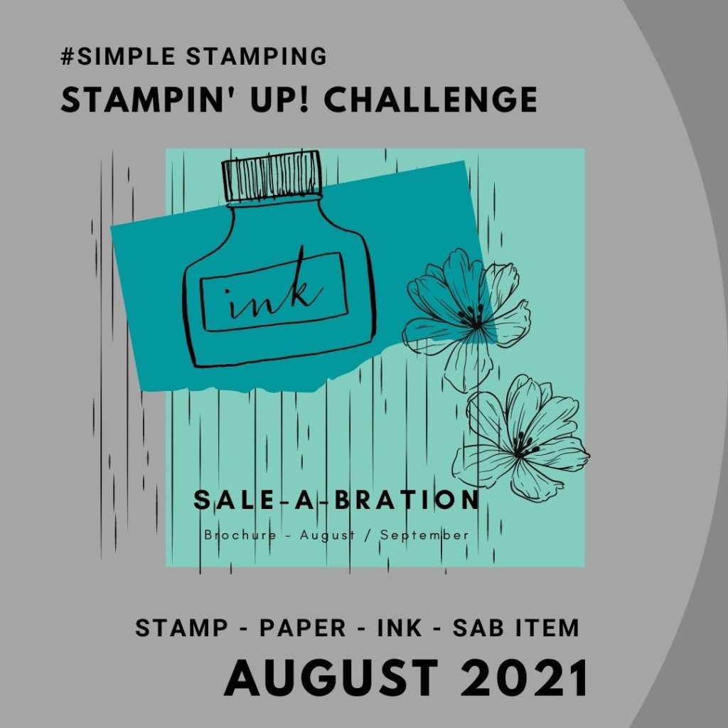 Creating for a few challenges. Sketch: Atlantic Hearts Sketch Challenge (#432); Color: TGIF (#328); Style and Materials: Stampin’ Up! August #SimpleStamping Challenge.