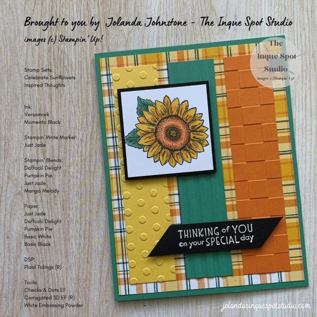 CELEBRATE SUNFLOWERS – INSPIRED THOUGHTS – TMS620 – SU! AUGUST COLOUR CHALLENGE – DT91