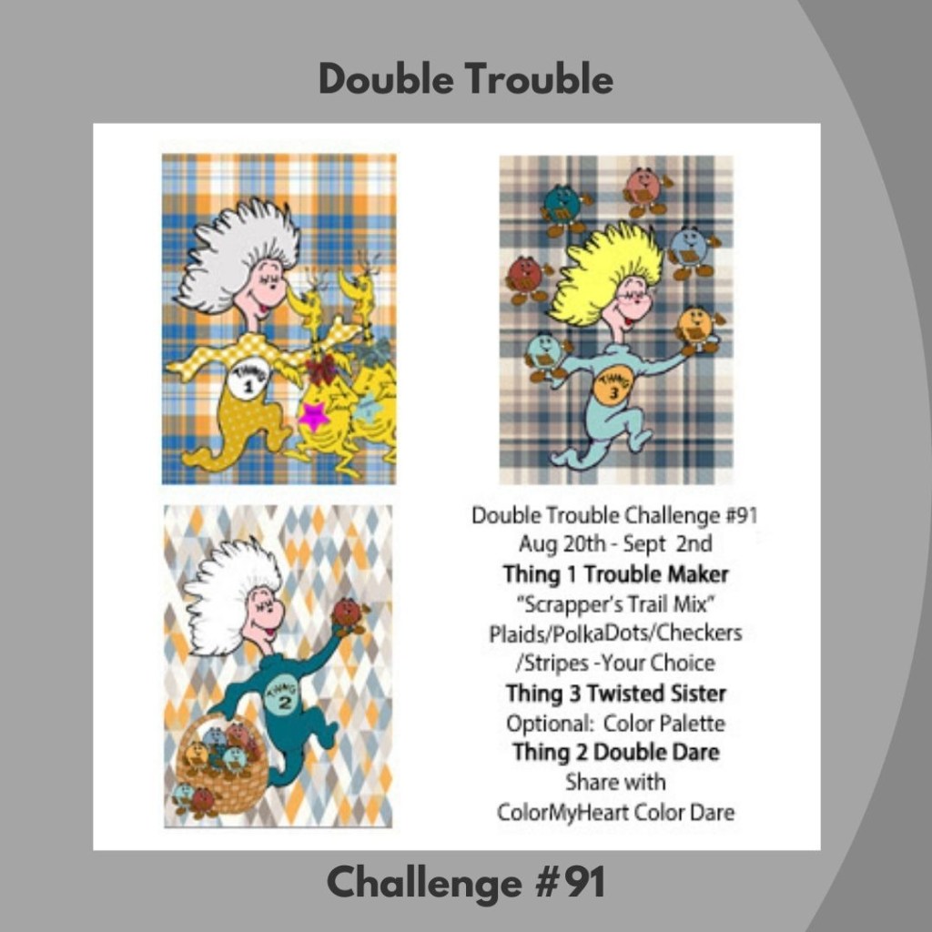 2. So pretty and great colors and mix of our “Scrapper’s Trail Mix”. I believe you have followed the colors from our partner ColorMyHeart Color Dare Challenge, you may want to look at their site and see if you have a good match to the M&M Mascot Color Palette. Thanks for sharing with us at Double Trouble, and hope to see you over at Color Dare.