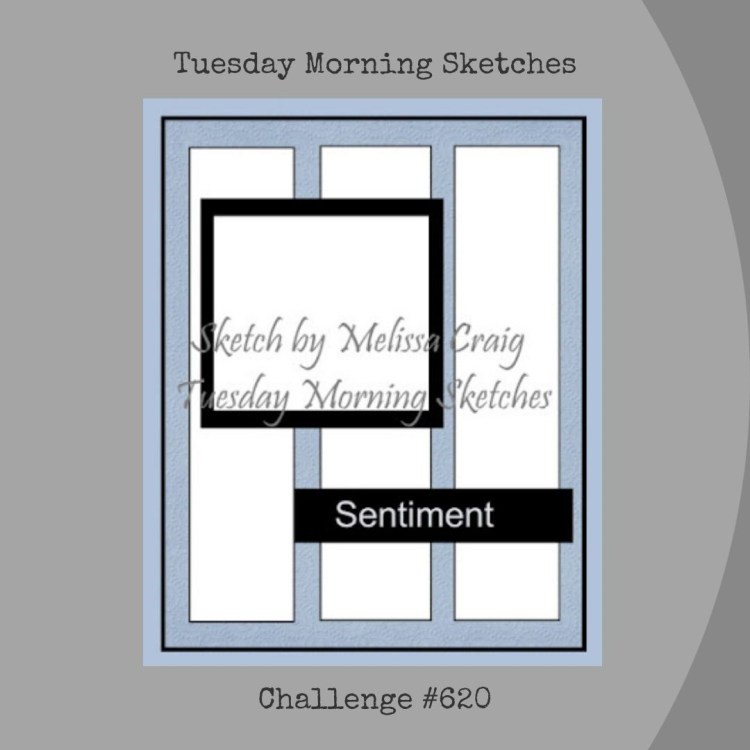 Sketch: Tuesday Morning Sketch Challenge (#620); Color: Stampin’ Up! Colour Facebook Challenge (August); Materials: Double Trouble Challenge (#91).
