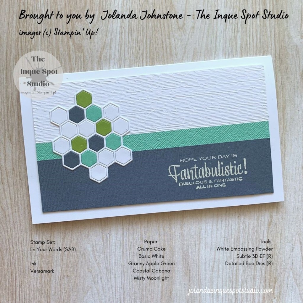 Jolanda, this card is fantabulistic! It’s so simple but still has a bit of oomph with that honeycomb. Hope you’re doing well!