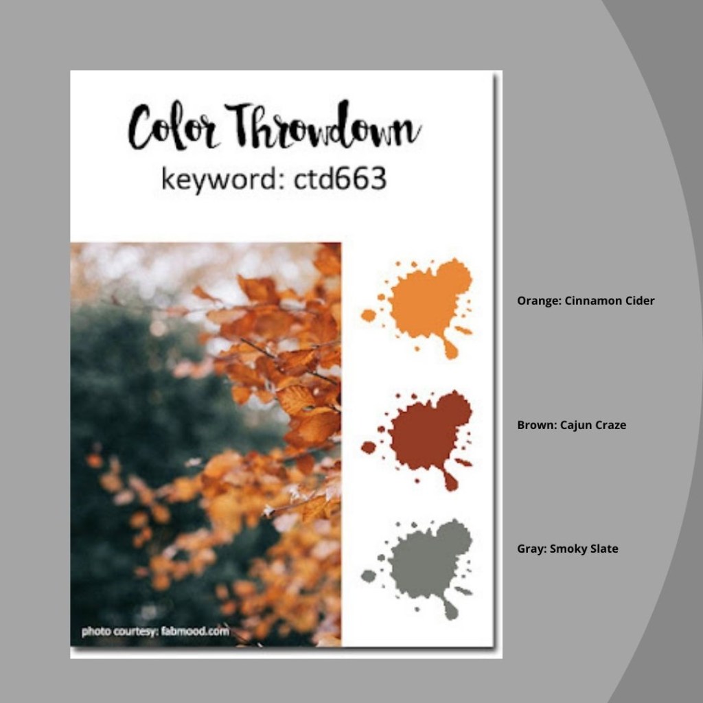 The colors Orange (Cinnamon Cider), Brown (Cajun Craze) and Gray (Smoky Slate) can be found in the sketch’s optional twist of Plaid Patterns . Hooray to the clinking Beer Bottles which evoke an Oktoberfest “Prost!”