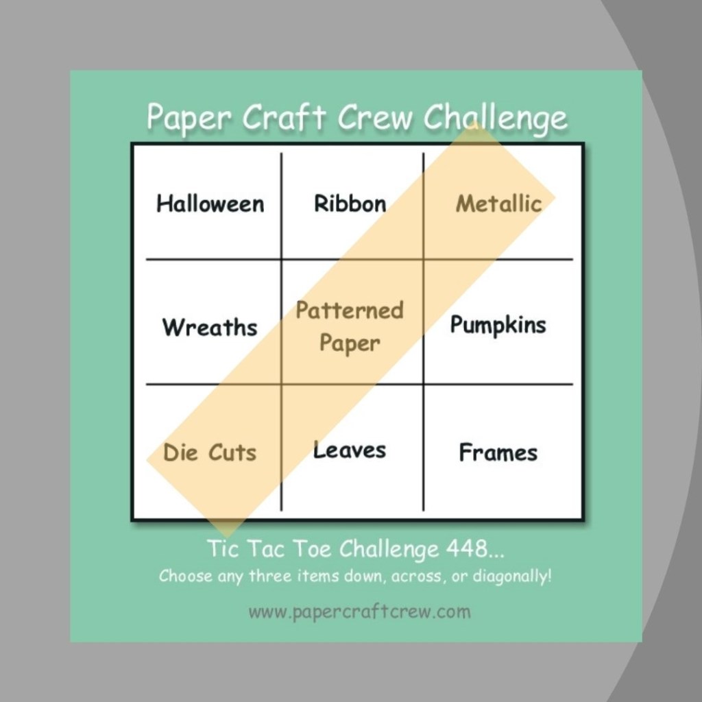 Subject: The Flower Challenge (#61) Fifth Anniversary Celebration; Colors: CAS Colours & Sketches Challenge (#442); Materials and Tools: The Paper Craft Crew Challenge (#448) Tic Tac Toe Board.