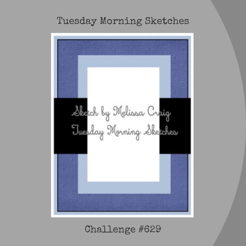I selected the current layout from Tuesday Morning Sketches (#629) because it was perfect for showcasing a stamp set or two and had lots of layers for adding interesting paper and the sentiment was Inspired By (#193C) challenge.