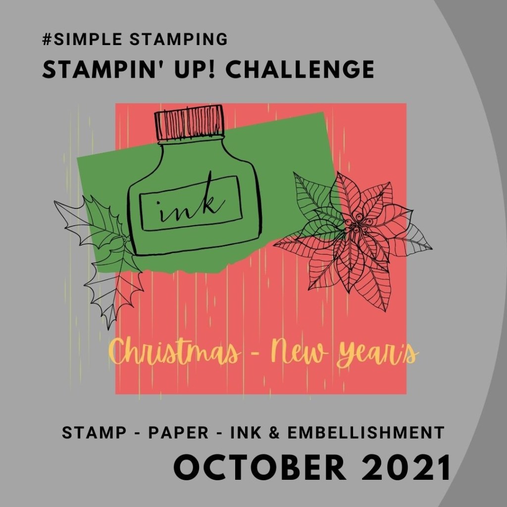 This afternoon, I decided to tackle Stampin’ Up! October Simple Stamping Challenge (Stamps, Ink, and Paper) Theme: Christmas or New Year’s and (yeah!) we were allowed to add embellishments.