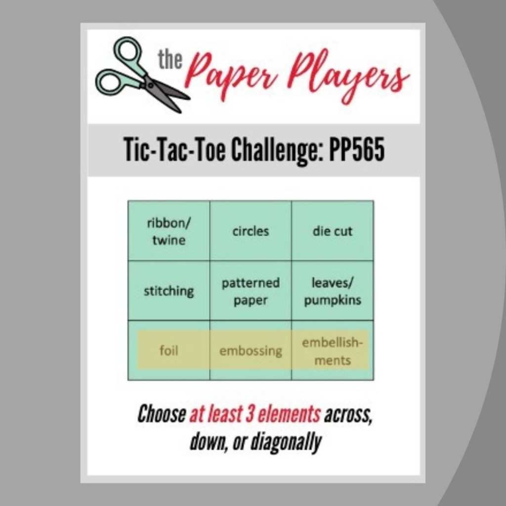 Great way to play with both of these tic-tac-toe grids, Jolanda! Your embossed foil background is so pretty and it really makes your sentiment and pine cone stand out! Thanks for sharing this with us at the Paper Players and Tic Tac Toe this week!