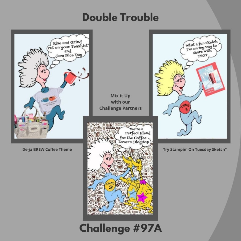 Over at the Double Trouble Challenge (#97A) Site, the current theme is Coffee. How could I resist? Their Twist this time is to partner up with Try Stampin’ On Tuesday using their Challenge Sketch (#532) and as a Double Dare – enter the Coffee Lovers Blog Hop. I’m game…