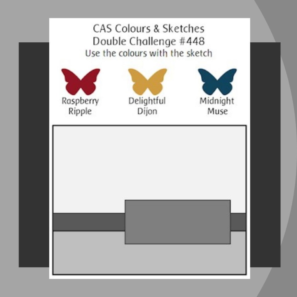 Over at CAS Colours & Sketches (#448), there is a double challenge. Some favorite retired colors, Delightful Dijon, Raspberry Ripple and Midnight Muse along with a sketch.