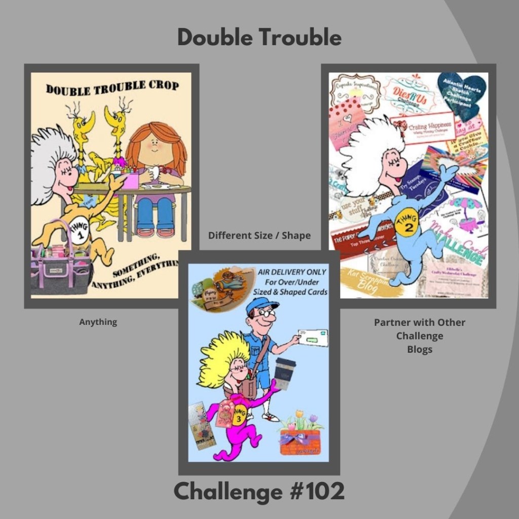 Playing with the Double Trouble (#102) Challenge…Thing One: Anything, Thing Two: Partner with other challenges, and Thing Three Twist: A different card size.