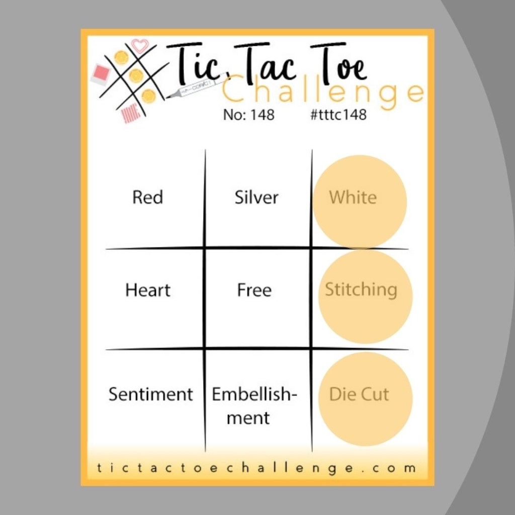 Additional elements were inspired by the current Tic Tac Toe Challenge (#148). Tic – White; Tac – Stitching; and Toe – Die Cut.