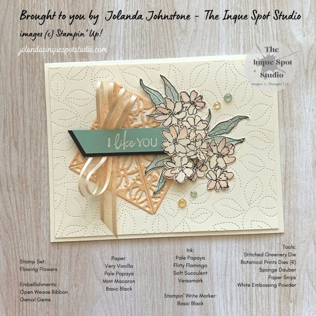 All of the details were the same except I substituted Thank You from the Happy & Heartfelt stamp set for I Like You from the Flowing Flowers stamp set.