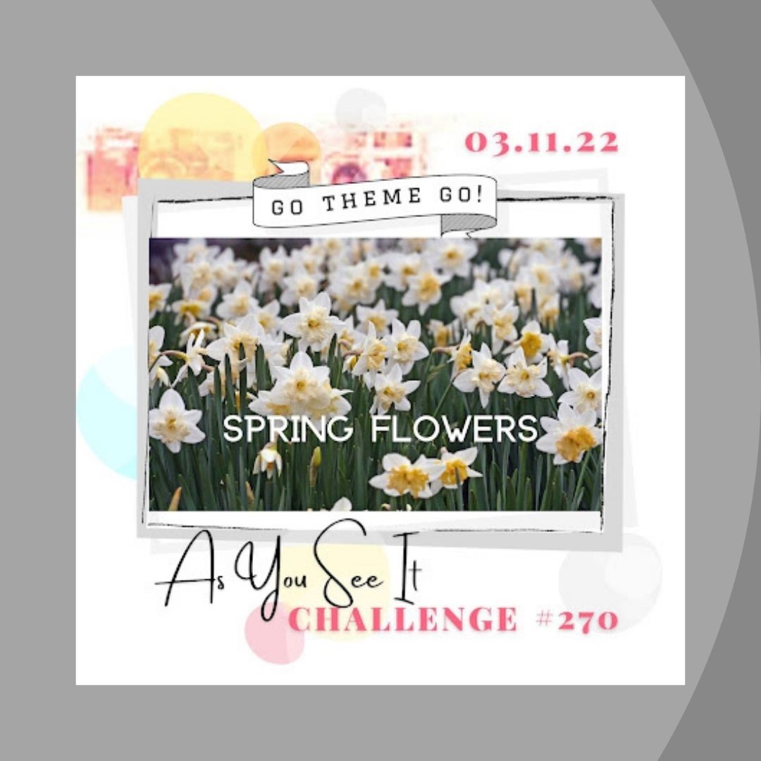 My favourite spring flowers have to be blossoms, too! They transform the trees! But they don’t last long enough, unfortunately! They have to be about their business of making fruit! I’m amazed at how well you’ve combined all those stamp sets and challenges! Thanks for joining us at As You See It Challenges!