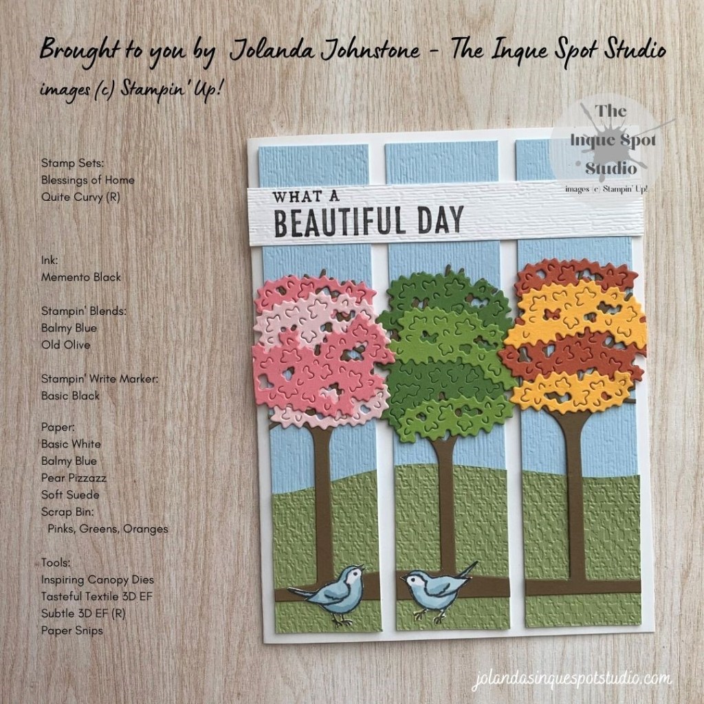 • The truncated sentiment, What a Beautiful Day, from the Blessings of Home stamp set was inked with the Basic Black Stampin’ Write Marker.
