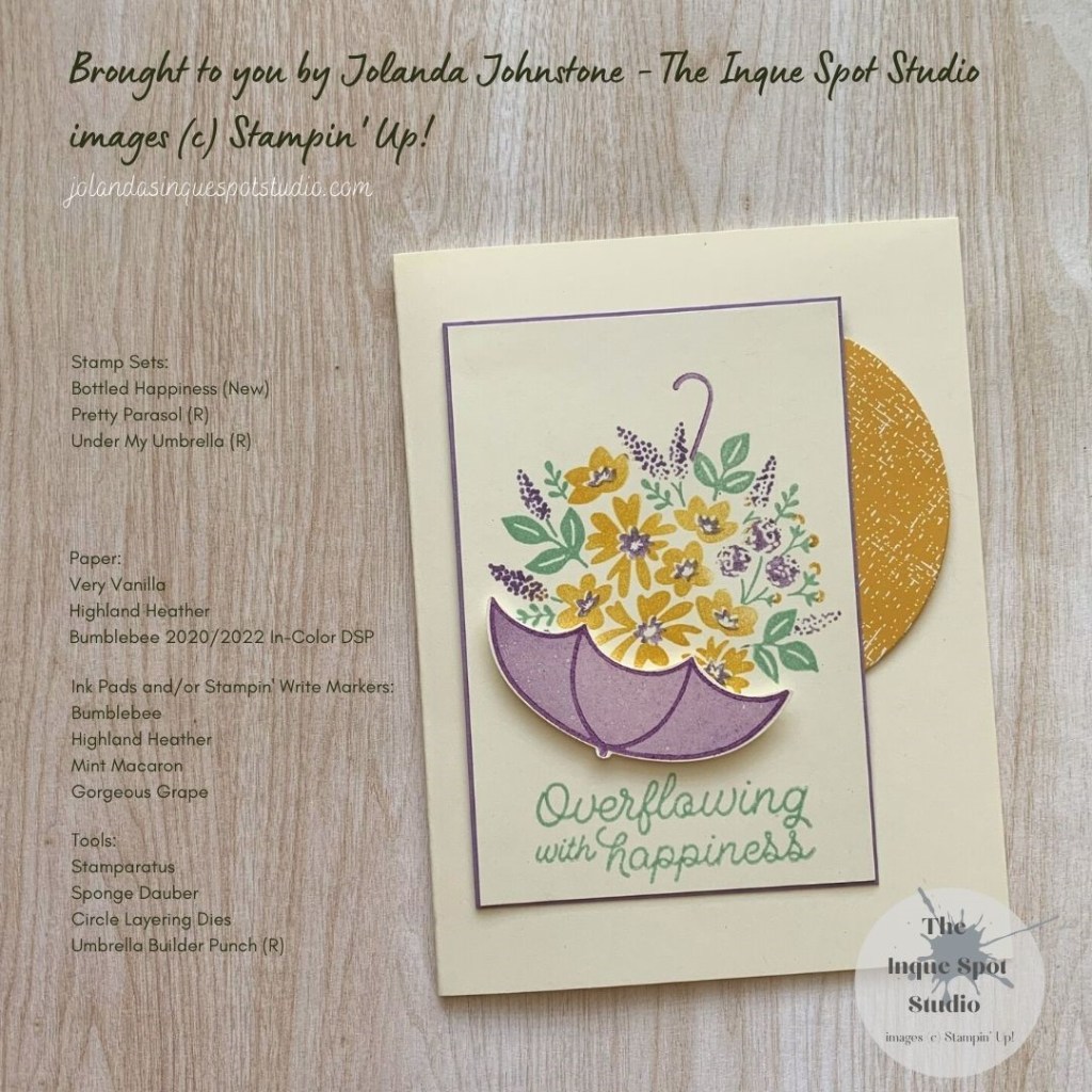 • The solid Umbrella from the retired Pretty Parasol stamp set was stamped with Highland Heather ink.