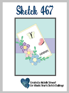 What a pretty card. I especially love all of the butterflies and the texture! Thank you for joining us at Atlantic Hearts Sketch Challenge and I hope you join us again soon.