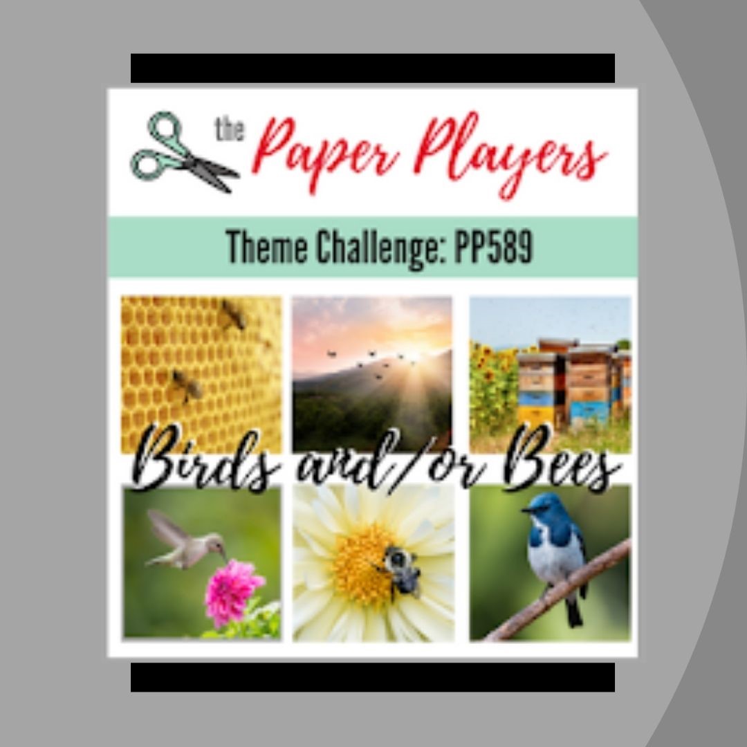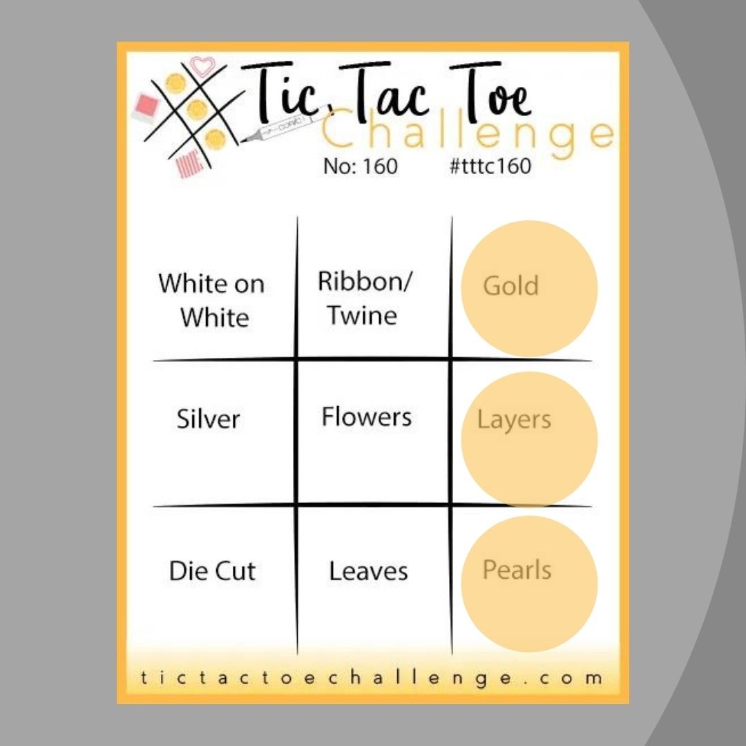 Sketch – Try Stampin’ On Tuesdays (#533) Option: Things That Fly; Theme – Paper Players (#589) Birds and/or Bees and; Materials – Tic Tac Tac (#160) Tic (Gold), Tac (Layers) and Toe (Pearls).