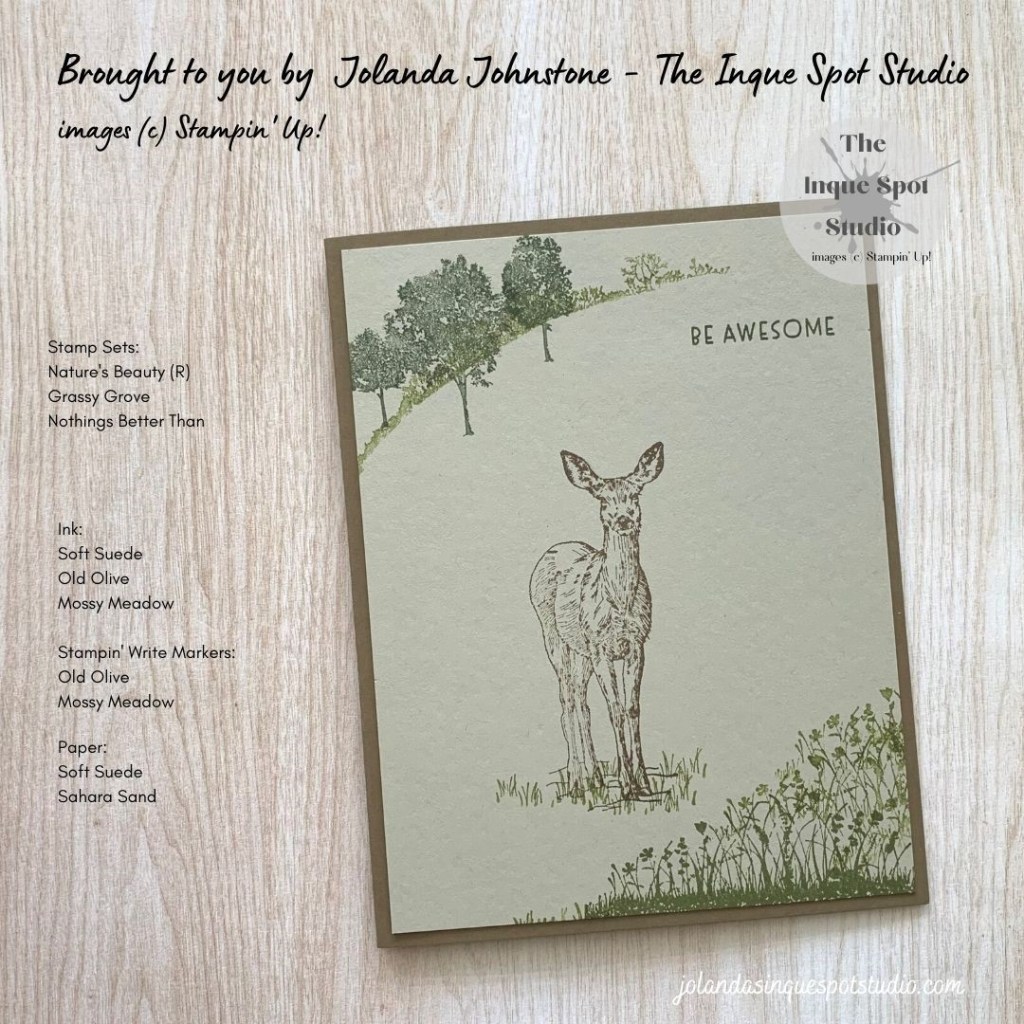 - Step 1: The Deer image from the Nature’ Beauty stamp set was stamped with Soft Suede ink.