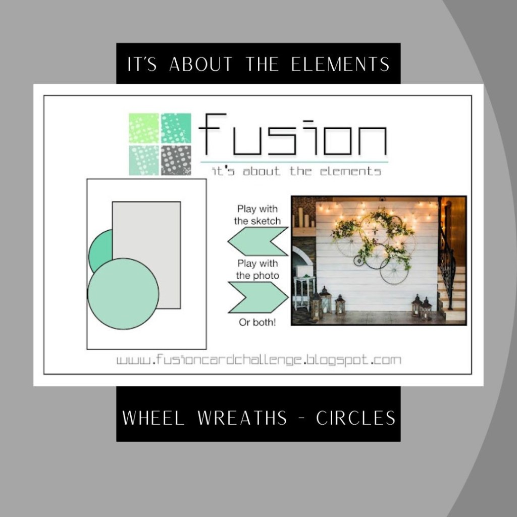 First off, I was considering the FUSION – It’s All in the Elements – Wheel Wreath Sketch and Inspiration Challenge. My take-away? Earthy colors with metallic accents and circle shapes.