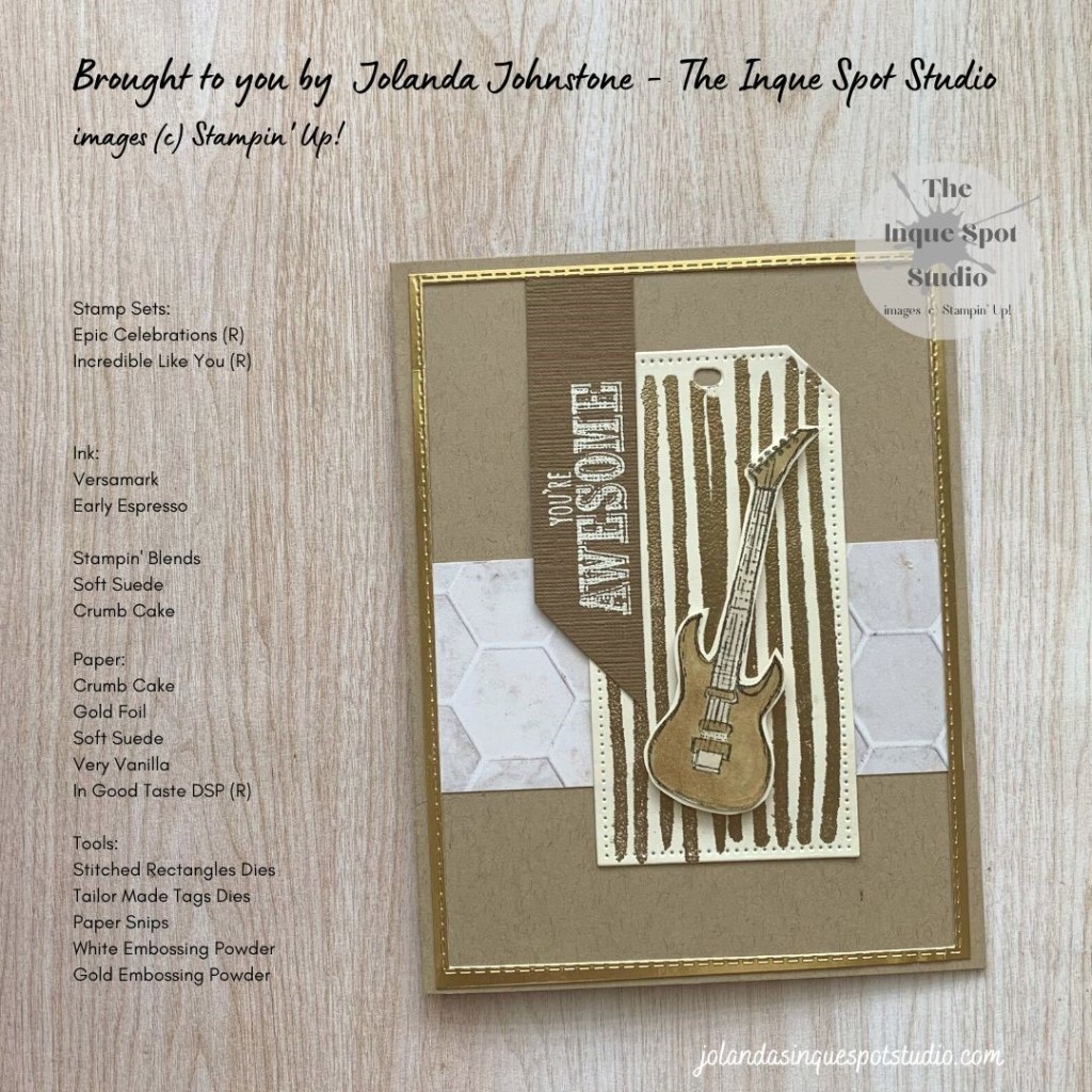 • The Guitar image from the retired Epic Celebration stamp set was stamped with Early Espresso ink.