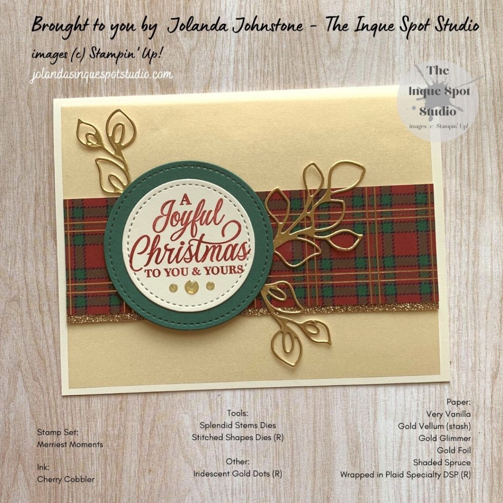 Wow, Jolanda, this is SO elegant – I love the sentiment feature, and that plaid is perfect! I love those gold die details, too, just perfect! Thanks so much for playing at Try Stampin’ on Tuesday!