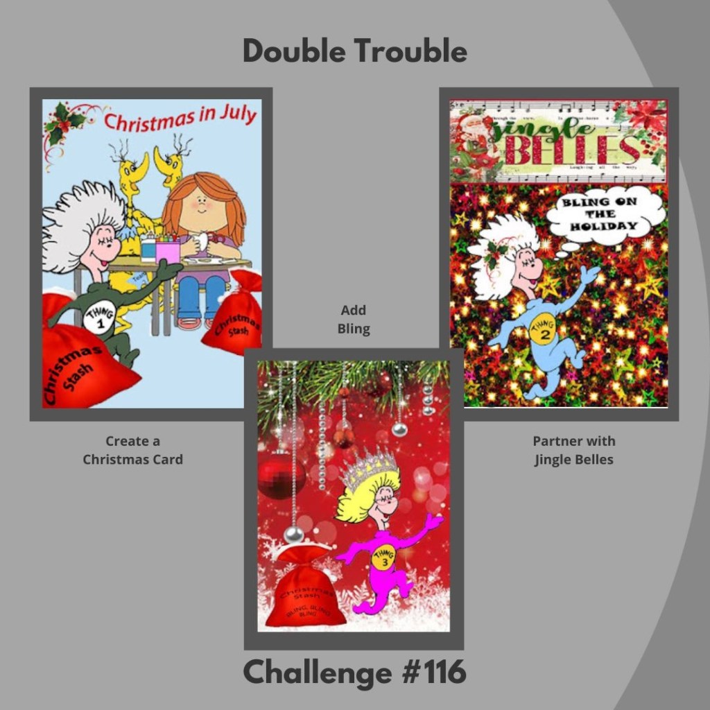Several Challenges with this theme: Double Trouble (#116) partnering with Jingle Belles (Bling on the Holidays) and TGIF (#337).