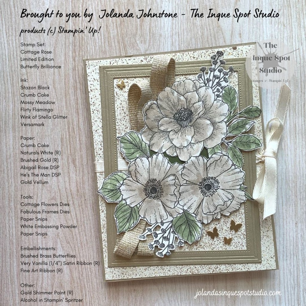 • The image was die cut with the coordinating die from the Cottage Flowers Dies set but subsequently fussy cut and cut apart to fit the width of the panel.