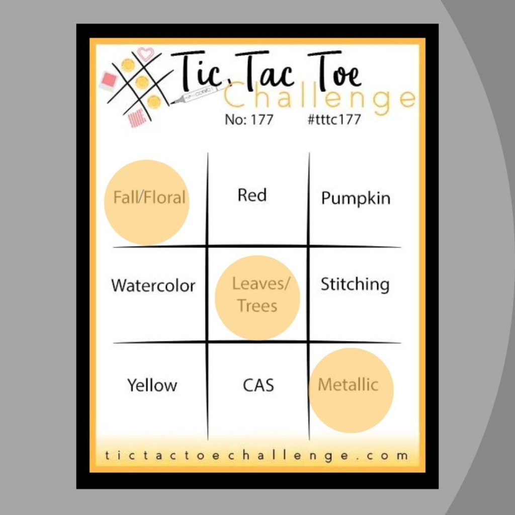Lovely design to highlight your fall leafy branch, Jolanda. The woodgrain background and pretty patterned paper ad. Nice detail. Thanks so much for joining us this week at the Tic Tac Toe Challenge!