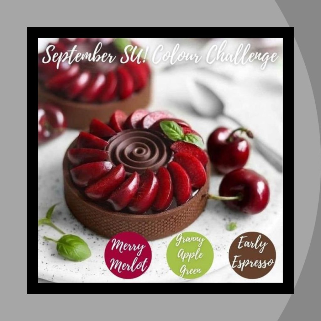 Starting with the Alphabet (Letter L) for Leaves to create my Wreath using the colors suggested by the Facebook September SU! Color team, then Happy Little Stampers Dies (September) for the Die Cut Shape suggested by the Try Stampin’ on Tuesday Sketch (#572). My design uses a number of repetitive items: Hexagons, Leaves, Stripes and Enamel Dots, so I chose to enter Just Us Girls (#649).