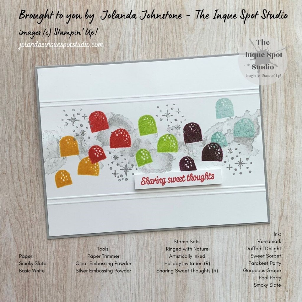 When I first saw the Rings of Nature stamp set, the Mushroom Caps image just looked like Ju Jubes / Gum Drops to me. I just needed an opportunity to realize my idea.