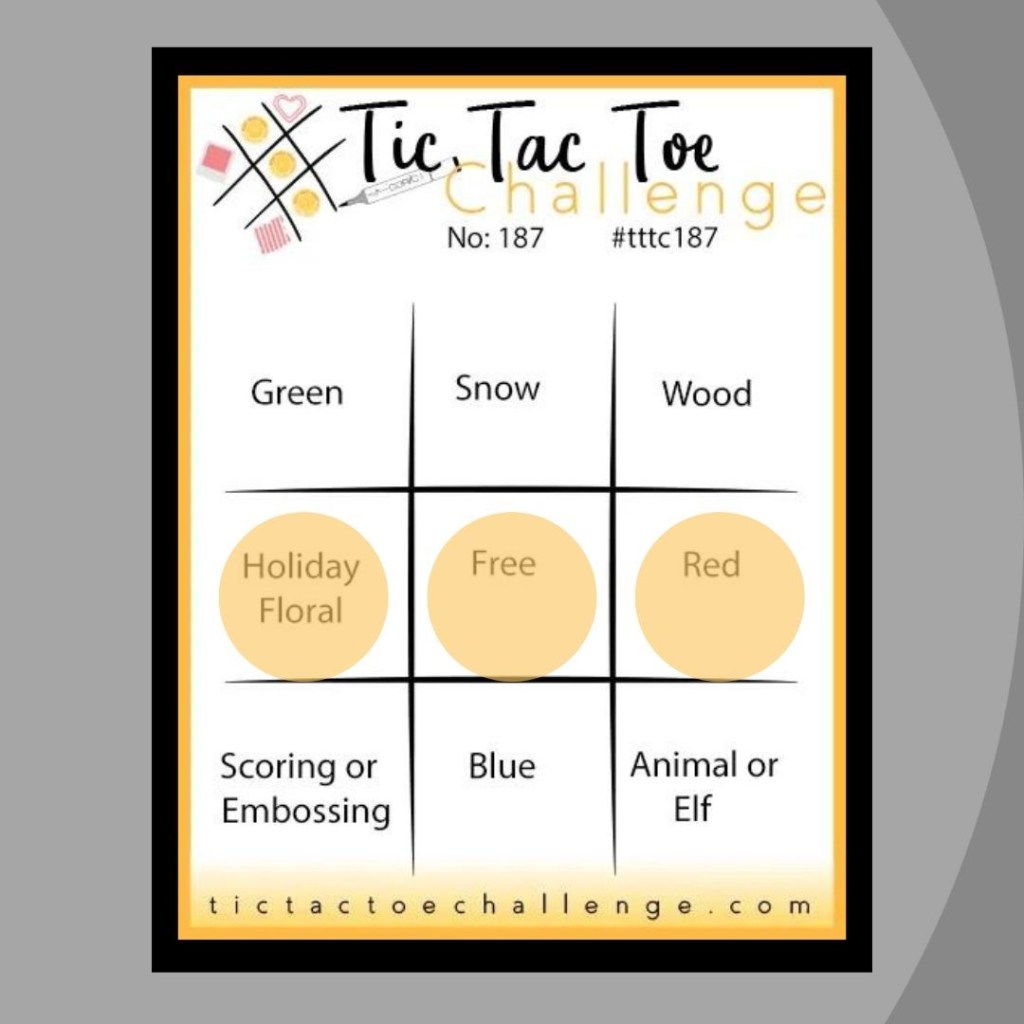 Playing with the current Tic Tac Toe (#187) challenge: Center Line – Holiday Floral, Free, and Red.