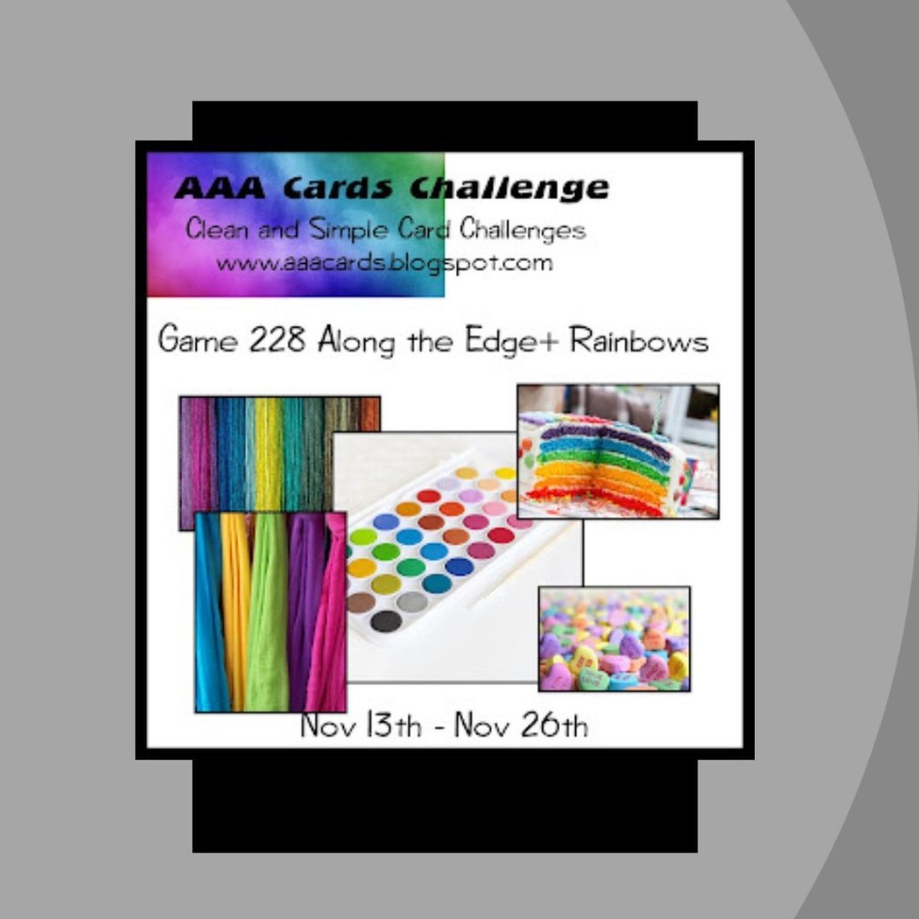 Super rainbow colours in your butterflies – a great CAS card. Thanks for playing along with us at AAA Cards.