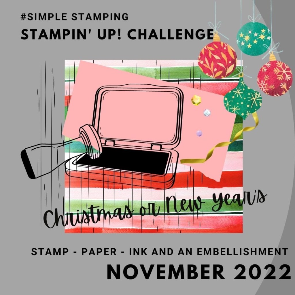 Each month, Stampin’ Up! presents us with a few opportunities to play with our products: #SimpleStamping (Just Stamps, Inks, Paper and perhaps a twist) and #CreativeChallenge (Could be Anything). It is pretty much the end of the month…