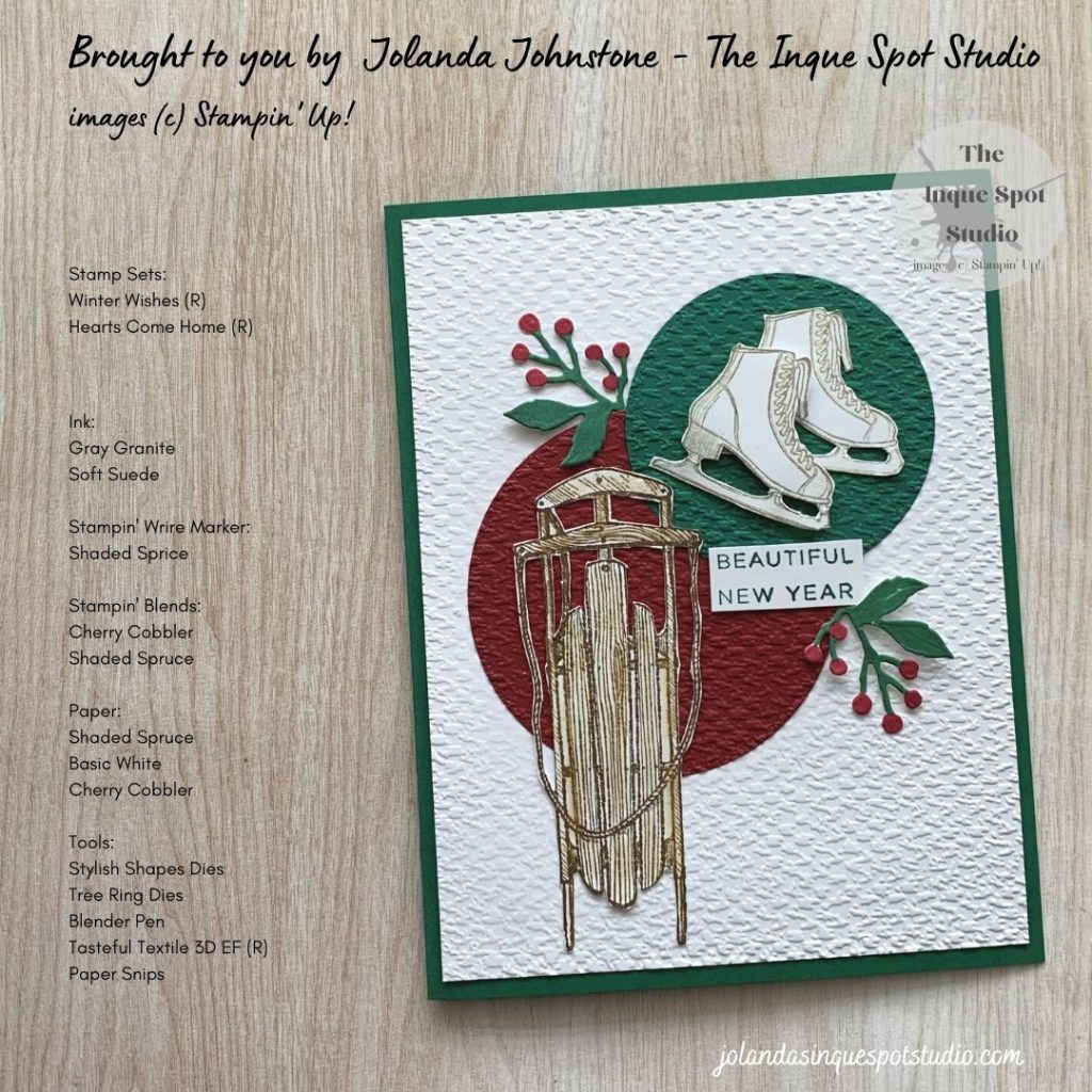- Only the words, Beautiful and New Year, from a sentiment stamp from the retired Hearts Come Home stamp set were colored with the Shaded Spruce Stampin’ Write Marker.